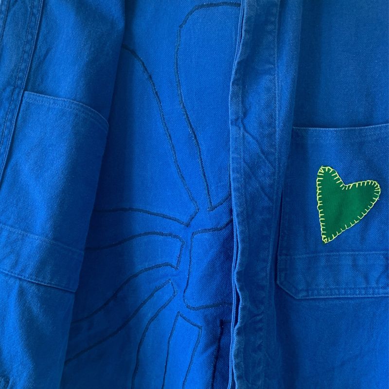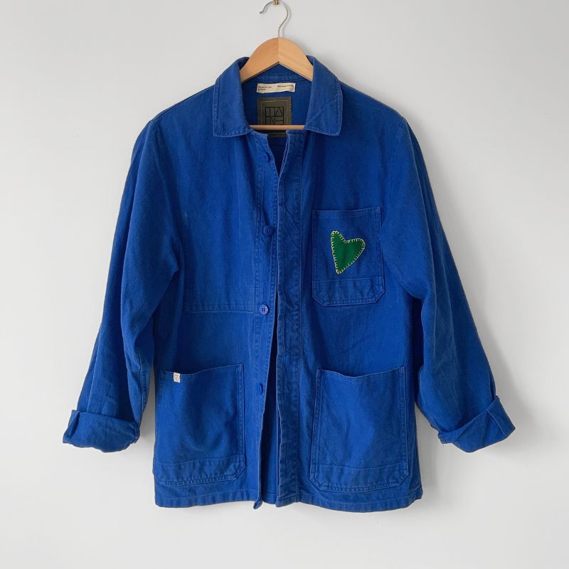 Cette veste est un Bleu de travail vintage upcyclé en coton.